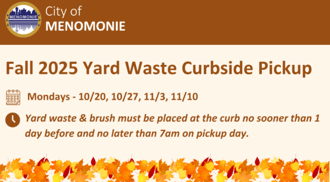 Mon Oct 27 Menomonie City Yard Waste Pick Up - All Day