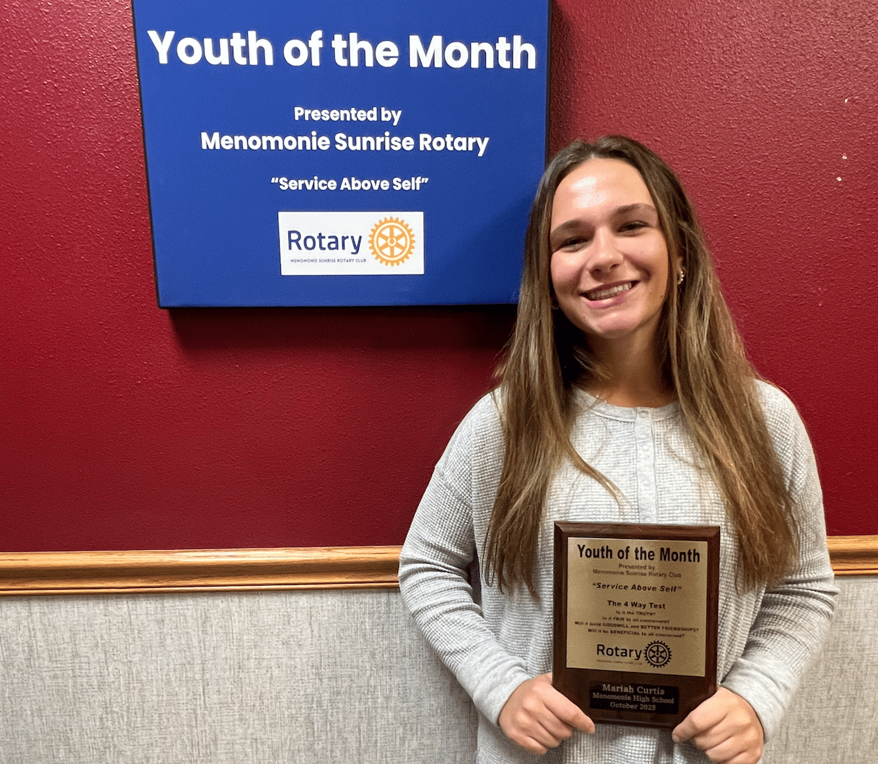 The Menomonie Sunrise Rotary Club is pleased to recognize Mariah Curtis, a member of Menomonie High School’s Class of 2026, as the October Youth of the Month.