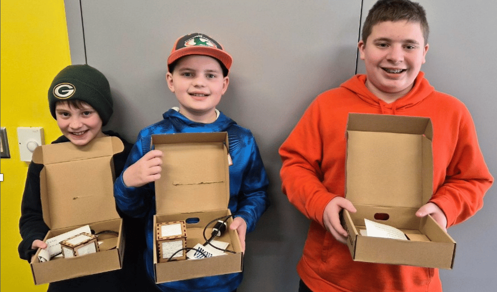 Dunn County 4-H Youth showing off their lithophane boxes made during the UW-Stout STEM Days. Pictured are Brookson Krahn, Ben Maves, Bennett Krashbaum. Photo: Zachary Rozmiarek