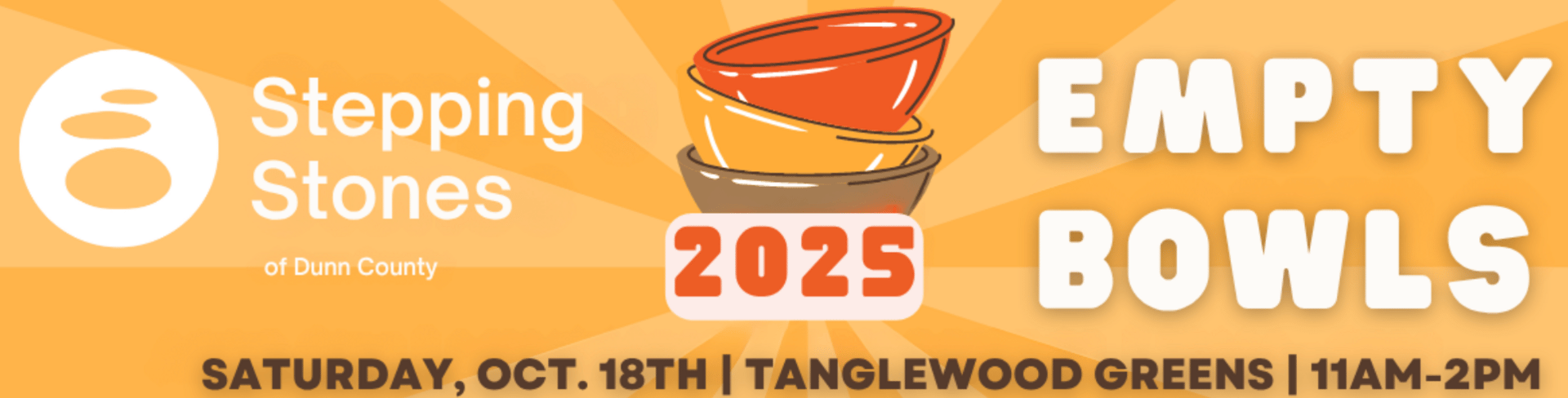 Menomonie – Stepping Stones of Dunn County is proud to announce its upcoming Empty Bowls fundraiser event on Saturday, October 18 from 11am - 2pm, at Tanglewood Greens in Menomonie, to continue to provide food, shelter, and support throughout the Dunn County communities.